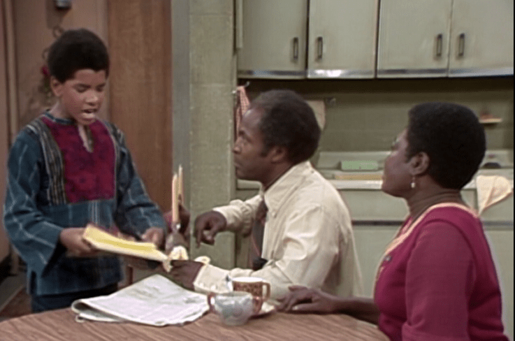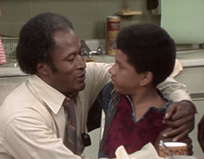 As this episode kicks off, Florida and the children are together in the living room area; Florida is working on a dress she’s making for Thelma, J.J. is painting a still life, and Michael is trying to decide on the subject for a school essay entitled, “The Man I Most Admire.” And James passes through on his way to a job interview for assistant foreman for a van and storage company. After considering famous names like Jesse Jackson and Thurgood Marshall, Michael ultimately decides to write about his father – but he rethinks his decision when James returns home, having given up on his chances for the job without even making it to the interview.