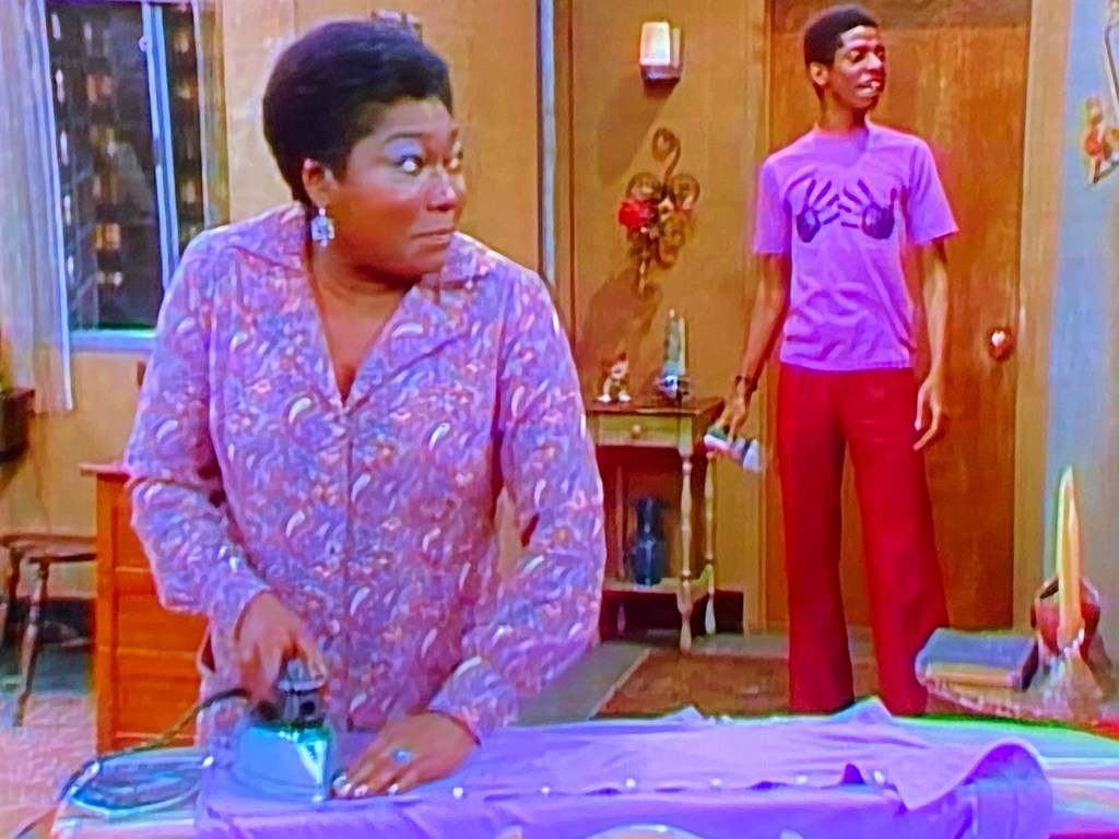 One of my favorite laughs in the episode comes when Florida is squabbling with James, insisting that she’s “happy, very happy” as she aggressively sets the breakfast table. J.J. observes, “If she gets any happier, she’s gonna break every dish in the house.” Another line that’s good for a guaranteed laugh is served up by Wanda during the women’s support group session. It’s almost spoken as an aside, and I always wonder if it was part of the script. It comes after Wanda asks Florida how often she has “relations.” Florida responds that it’s none of her business, adding a second later, “And plenty!” Beneath the laughs of the studio audience, you can hear Wanda say, “Uppity, ain’t she?” Gets me every time.